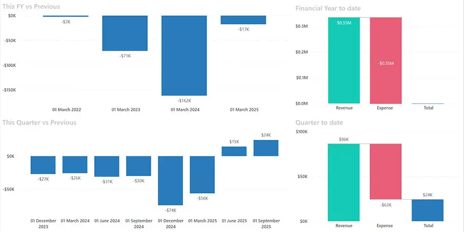 Connectorly Power BI Templates for Xero are ready-made report templates designed to help you turn your Xero data into clear, interactive dashboards in Power BI. They give you a faster way to report on financial performance, cash flow, revenue, expenses, budgets, and other key metrics without having to build everything from scratch.